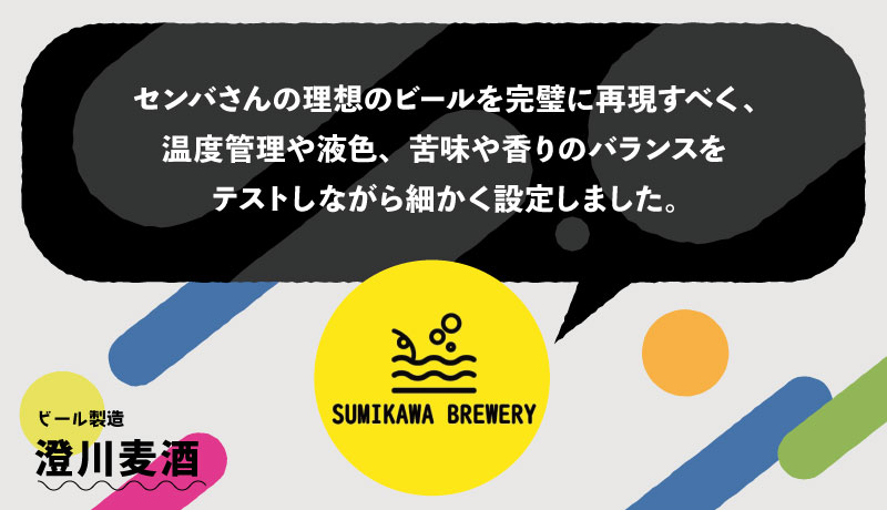 センバビールのビアスタイルはペールエールです。味わいと香りがしっかりあって、でもIPAほどは苦くない飲みやすさ。ガバガバ飲むビールではなく、2〜3杯飲みたくなるちょうどよさを目指しました。