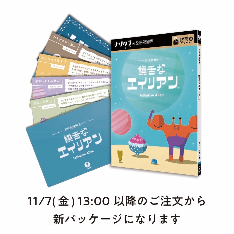 封筒の中には様々な謎が記されたポストカードが5枚。おや…?ポップで不思議な見た目のエイリアンたちが、何やらあなたに話しかけてきているようです。