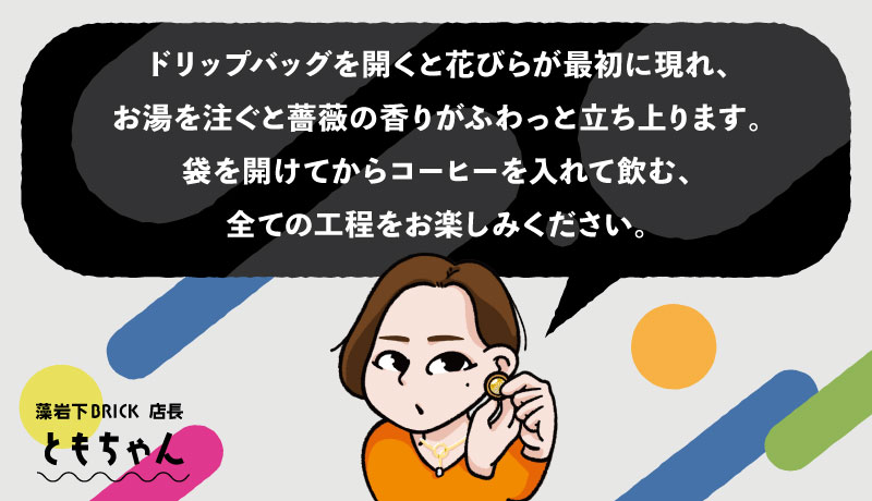 ドリップバッグになっているのでご自宅で手軽にお楽しみいただけます。