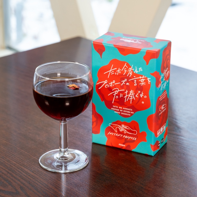 『たった今考えたプロポーズの言葉を君に捧ぐよ。』をイメージして作ったオリジナルブレンドコーヒーです。コーヒー豆と一緒に、『今プロ』を象徴する薔薇の花びらが入っています。